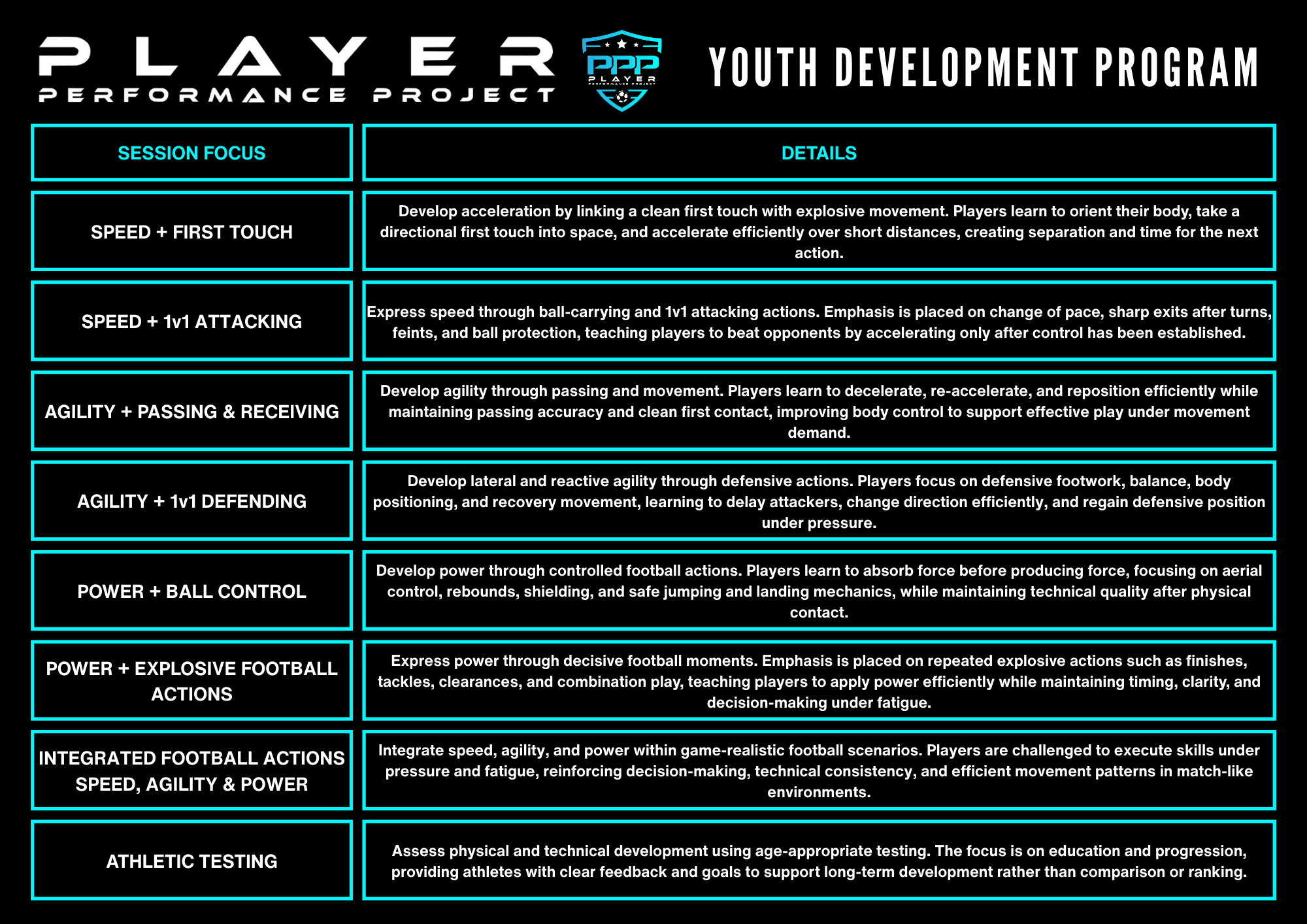 Tuesdays 5:30pm & 6:30pm Athletic & Technical Development Session @ Player Performance Project